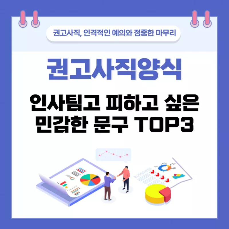 한 회사와 한 명의 직원이 각자의 사정을 안고 만나고 헤어지는 이별의 형식은, 때로는 말보다 문장 속에서 더욱더 아프게 다가올 수 있는데요. 특히 인사팀의 손끝에서 탄생하는 권고사직서양식에서는 사소한 단어 하나가 갈등의 불씨가 될 수 있고, 문장 하나가 소송의 단초가 되기도 합니다. 오늘은 인사팀조차 피하고 싶어 하는 민감한 문구 TOP3을 중점적으로 살펴보며, 현명하고 배려 있는 권고사직서 작성법을 공유해 드리도록 하겠습니다.